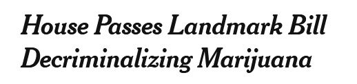 《紐約時報》報道稱,民主黨控制下的眾議院以228對164票,通過了大麻合法化法案,並廢除非暴力大麻犯罪的定罪,即赦免所有因非暴力毒品犯罪而入獄的人。這是美國國會首次至少有一院認可大麻合法化。然而法案要在共和黨掌控的參議院過關,機會不大。