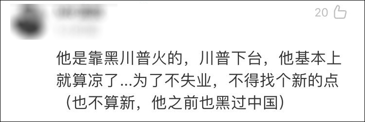 還有人説:“我發現了,他只有在黑人遭到歧視不公時站出來為他的同胞説話,我當然支持。然後轉頭對中國人優越感十足,很不尊重,真分裂。”