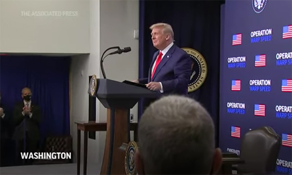 特朗普還在記者會上表示,如果哪個疫苗供應商“有什麼問題”,他就會引用“國防生產法案”的條款來對付這家公司。不過他沒有提到是否會利用這項法案迫使疫苗公司優先向美國供應疫苗。