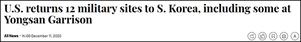 據韓聯社統計,歸還的12座美軍基地總面積約為146.5萬平方米。