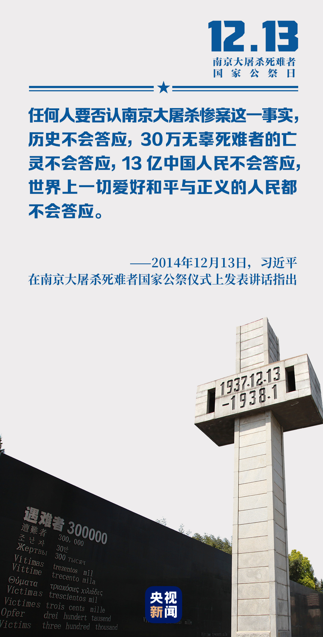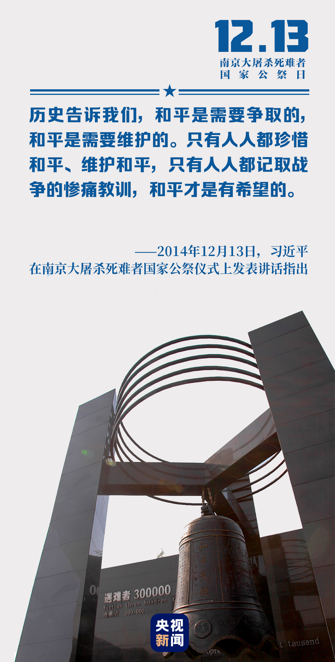 “牢記歷史、不忘過去,珍愛和平、開創未來”,6年前的12月13日,習近平總書記在公祭儀式上的講話深沉而堅定。