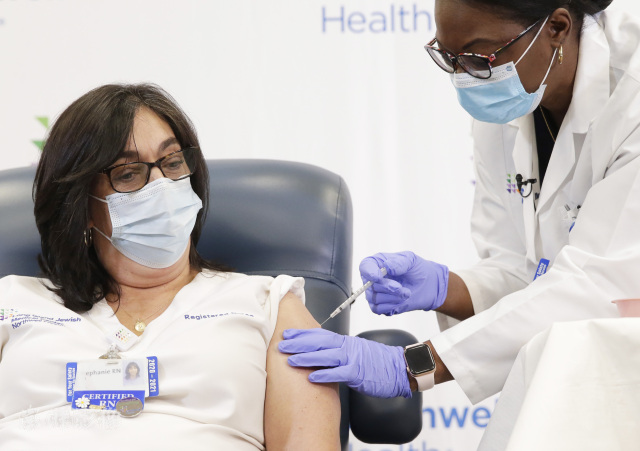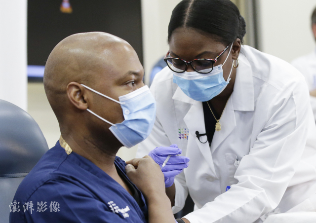 據《紐約時報》報道,當地時間14日上午9點過後,在紐約市皇后區,長島猶太醫療中心重症監護室護士桑德拉·琳賽(Sandra Lindsay)最先接種了輝瑞疫苗,成為全美首批疫苗的首位接種者。