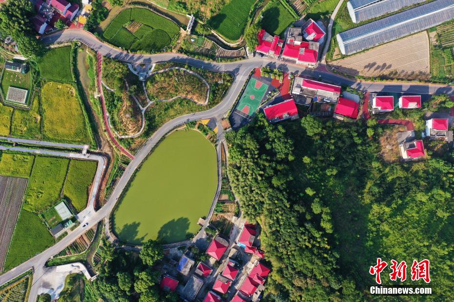 資料圖:2020年8月27日,航拍江西省萍鄉市蘆溪縣銀河鎮紫溪村秀美鄉村,一排排紅頂樓房,錯落有致,成為美麗鄉村一道靚麗的風景線。 劉佔昆 攝