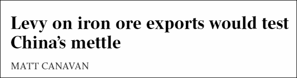 卡納萬13日晚在《澳大利亞人報》上撰文,號稱要“試探中國的底氣”,提議對輸華鐵礦石徵收1%的報復性關税。