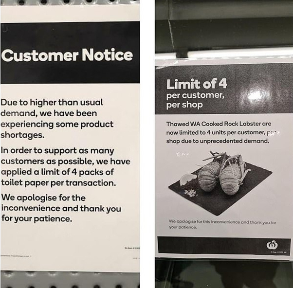有澳大利亞網民比較了龍蝦限購和衞生紙限購的通知 圖源:社交媒體
