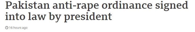 巴基斯坦總統辦公室當天發表聲明説:“這項法令將有助於加快針對婦女和兒童的性虐待案件的處理。”並補充稱,“該法令有效期為120天,直到得到議會批准為止。”