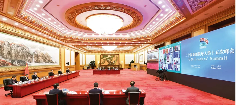 △2020年11月,習近平以視頻方式出席二十國集團領導人第十五次峯會第二階段會議,重點闡述關於可持續發展問題的看法。