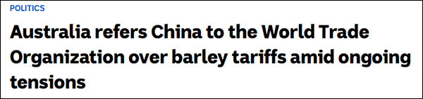 澳大利亞就中方徵收澳大麥關税問題,向WTO提起申訴