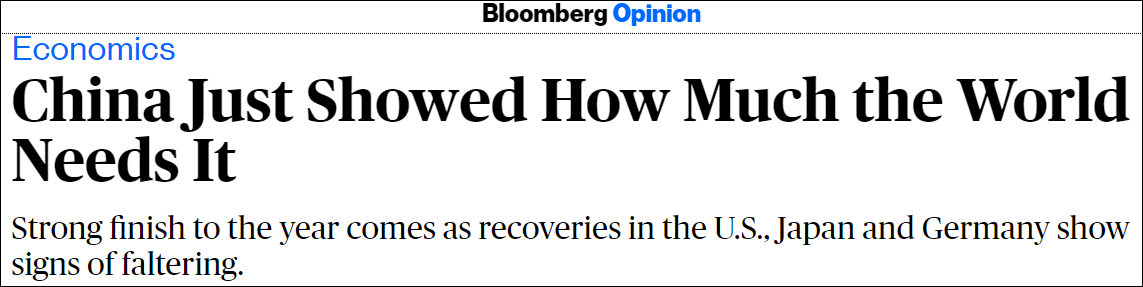 12月15日(格林尼治標準時間),彭博社亞洲經濟專欄作家丹尼爾·莫斯(Daniel Moss)發表了一篇題為“中國已經證明,世界多麼需要中國”的評論文章。此前3小時,彭博社的另一篇報道對中國最新的宏觀經濟數據做出分析,稱其顯示了中國進一步領先於其他主要經濟體。