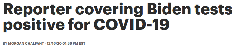 (觀察者網訊)當地時間12月16日,多家美媒報道稱,美國一名記者新冠病毒檢測呈陽性,其曾於本週二(15日)與當選總統拜登一同赴佐治亞州參加活動。