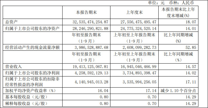 據恆瑞醫藥10月公佈的第三季度財報,公司前三季度營收194.13億元,淨利潤為42.59億元,同比均漲14%左右。