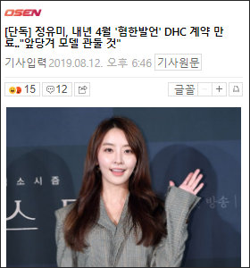 兩天後,DHC韓國代言人鄭柔美直接與DHC解約。
