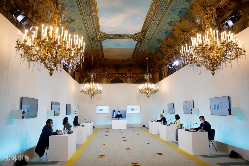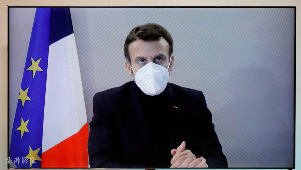 馬克龍17日晚以視頻方式出席會議 圖自:澎湃影像
