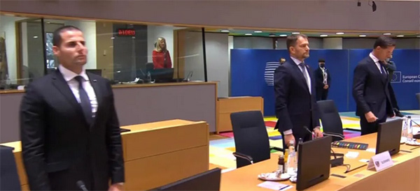 根據歐洲理事會網站發佈的視頻來看,在與會各國領導人為感染新冠去世的前法國總統德斯坦默哀時,馬托維奇並沒有佩戴口罩。