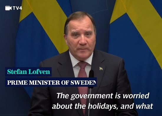 截至18日,瑞典累計確診病例367120例,累計死亡7993例。該國疫情自10月以來快速惡化,11月因各種原因死亡總數超過8000人,創1918年流感大流行以來紀錄。近期,瑞典各地醫院滿載、醫護出現辭職潮,醫療系統瀕臨被擊穿。