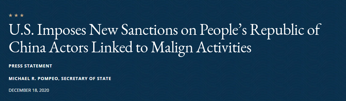 路透社評論稱,這是美國總統特朗普最後一個月任期內對華採取的進一步行動。