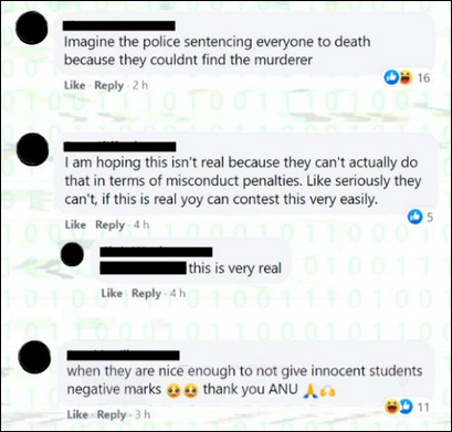 ABC的報道稱,目前尚不確定,對未被證明有作弊行為的學生進行處罰是否與ANU的校規有關聯性。