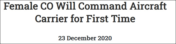 1990年,達琳·伊斯克拉(Darlene Iskra)被任命為美國海軍一艘打撈船的艦長,成為了美國海軍史上首名指揮艦艇的女性。但直到1994年3月,美國海軍才正式發佈命令,允許女性在各類作戰艦艇上服役。1998年,一位名叫莫林·法倫(Maureen Farren)的軍官成為了美國海軍首位女性作戰艦艇指揮官。