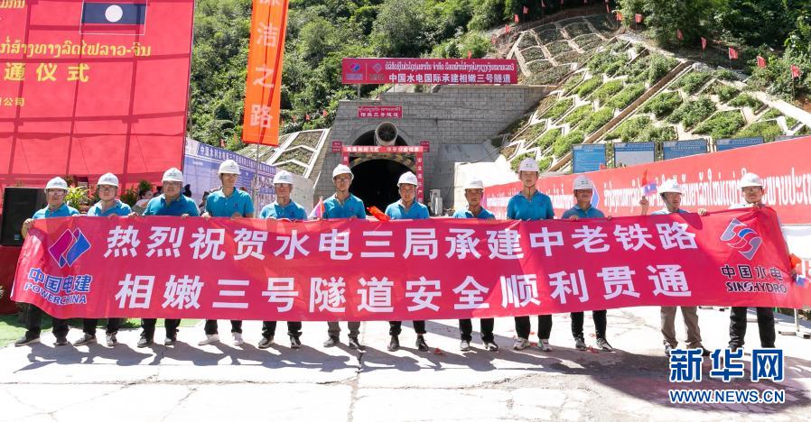 這是9月29日在老撾北部琅勃拉邦省拍攝的相嫩三號隧道貫通儀式現場。新華社發(凱喬攝)
