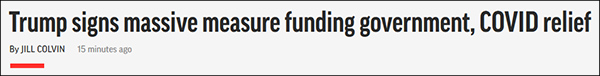美國會議員敦促下,特朗普終於簽署新冠紓困法案
