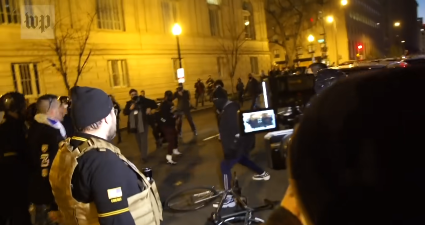 選舉人團驗票2天前,兩派抗議者12日晚在華盛頓一度爆發衝突 視頻截圖