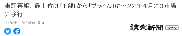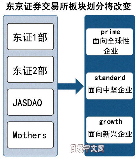 東京證券交易所將把現在的1部、2部、東證Mothers和嘉斯達克(Jasdaq)等4個市場體制改為“prime”、“standard”、“growth”這3個市場。