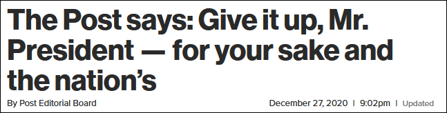 僅僅在今年10月,該報還發文支持特朗普連任,其獨家爆料的“硬盤門”也成了特朗普攻擊拜登“腐敗”的趁手工具。但12月27日,《紐約郵報》話鋒一轉,專門發表社論:“放棄吧,總統先生——為了你和國家的利益。”而根據27日《衞報》的評論,除了《紐約郵報》外,默克多集團旗下的福克斯新聞也會在拜登當選之際“轉變口風”。
