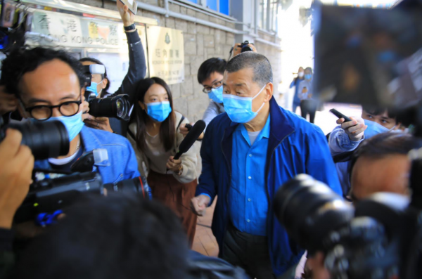 被捕前12月3日,黎智英到警署報到。圖片來源:香港文匯網