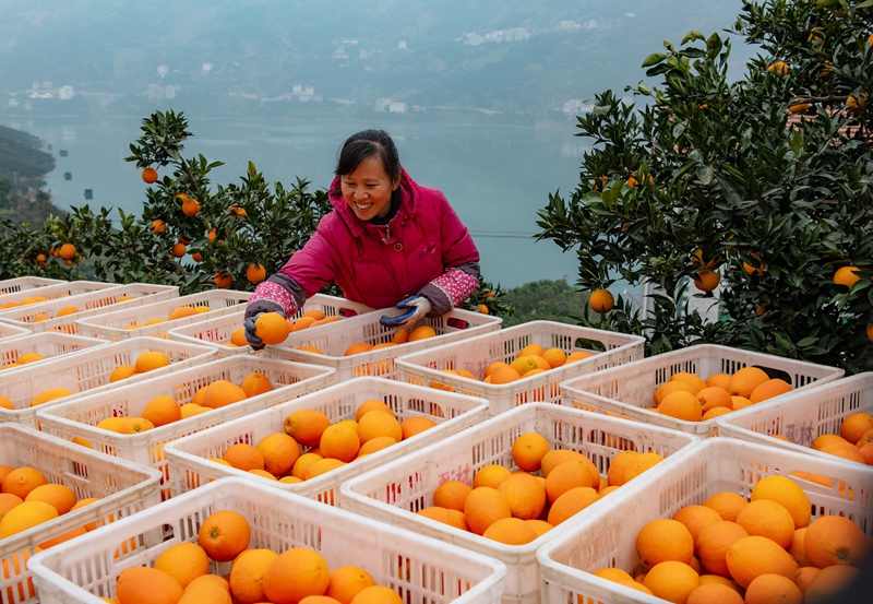 2020年12月27日,湖北省秭歸縣水田壩鄉下壩村村民在整理即將出售的臍橙。