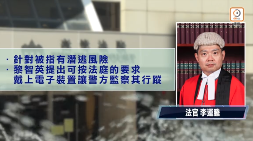 批准保釋法官:黎智英曾稱願戴電子鐐銬,只是香港沒有