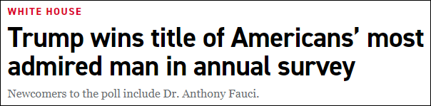 蓋洛普民調:特朗普獲2020美國人心中“最受尊敬男性”