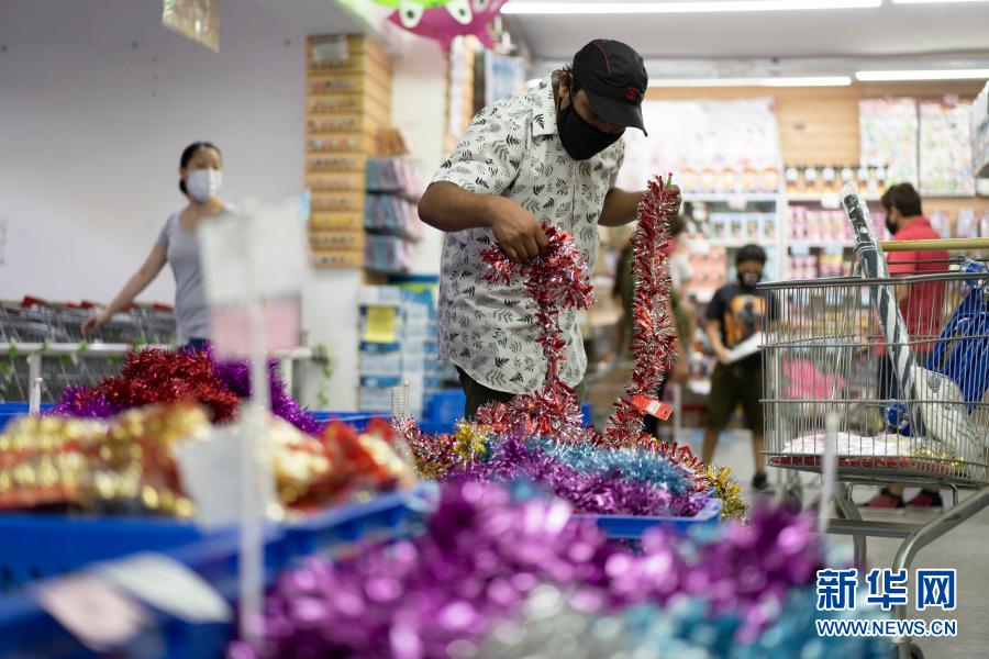 12月18日,在阿根廷布宜諾斯艾利斯,當地民眾在華人商鋪採購聖誕季用品。物美價優的中國商品成為許多阿根廷人的節日首選。新華社發(馬丁·薩巴拉攝)