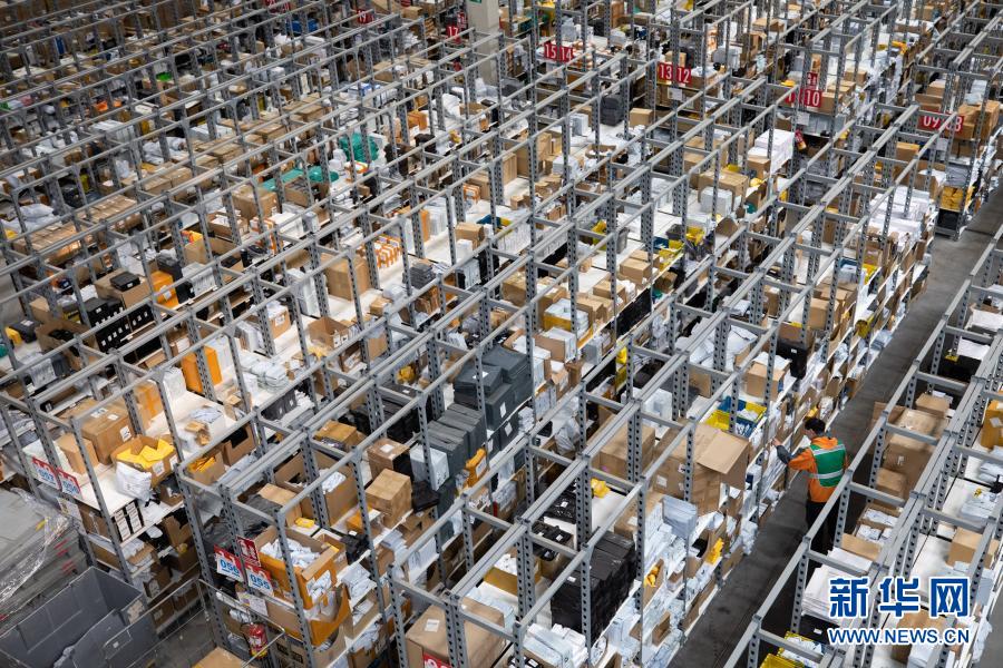 11月11日,在西班牙瓜達拉哈拉市的菜鳥海外倉,工作人員正在分揀商品。新華社記者 孟鼎博 攝