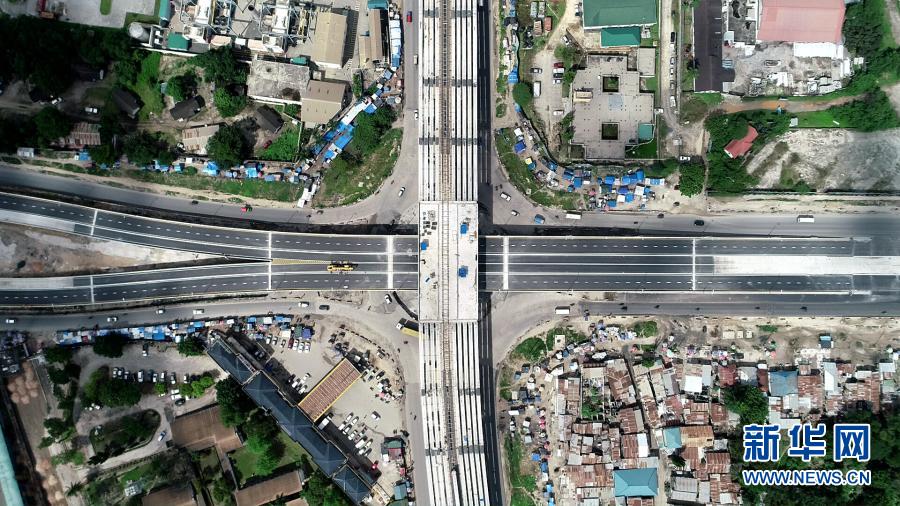 這是5月2日在坦桑尼亞達累斯薩拉姆拍攝的建設中的烏本戈立交橋項目。烏本戈立交橋是坦桑尼亞政府主導的第一個立交橋項目,主要由一座三層立交橋和配套分流道路構成,由中國土木工程集團東非有限公司承建。新華社發
