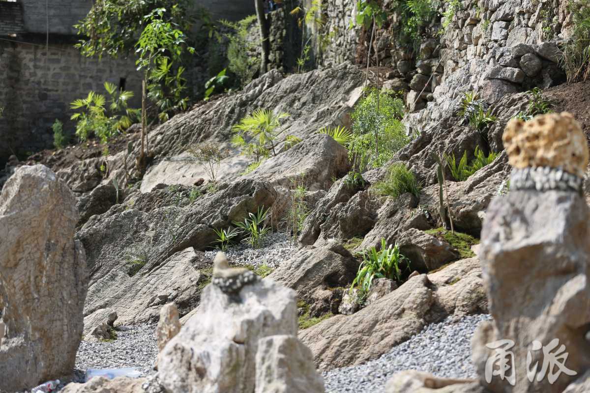 在叢志強的指導下,定汪村村口一處雜草叢生的斜坡,被村民改造成了一件枯山水作品《重生》。