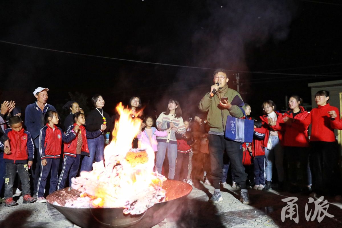 叢志強在定汪村的篝火晚會上。