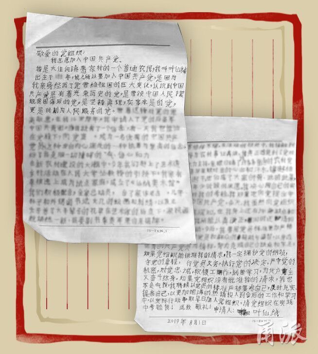 65歲的葉仙絨不識字,一筆一畫手描出了入黨申請書:“看到叢老師給村裏帶來的巨大變化,我燃起了年少時的夙願,我決心用自己的行動接受黨對我的考驗”……