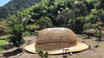 在城楊村,花甲之年的篾匠俞振飛重拾荒廢了數十年的手藝,用竹子做出了讓他自己都感到吃驚的大型裝置藝術作品——直徑達6米的巨型草帽和長達7米的巨型啤酒瓶……