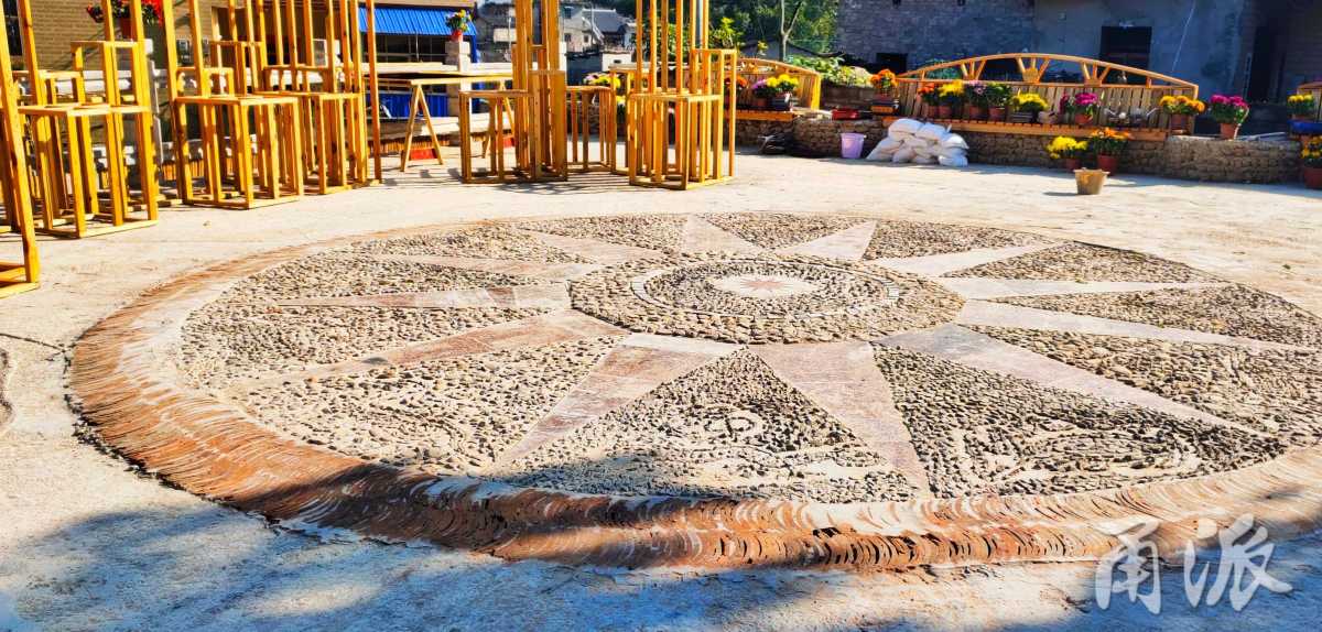 三岔口的廢棄地塊,被改建成了金銅鼓廣場,人們將花崗岩、瓦片和石塊拼成十二生肖圖案;廣場上的“人大椅”椅背上的圖案,源自布依族蠟染上的太陽形花紋圖案;未來書院的牆上,釘着用木條拼接的“中國夢”書架……