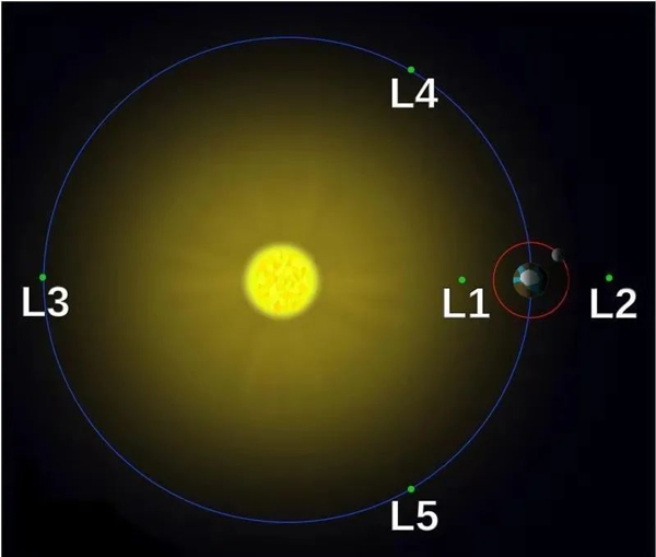 拉格朗日點,是指受兩大物體引力作用下,能夠使小物體穩定的點,小物體相對於兩大物體基本保持靜止。日地L1點,位於太陽與地球的連線之間,是放置太陽觀測站的最佳位置。在那裏,航天器永遠不會被地球或者月球遮擋,可以不間斷地觀測太陽,或者觀測地球向陽面。2011年,嫦娥二號在完成既定任務後,從月球軌道出發開展拓展任務,於2011年8月25日成功環繞日地引力的另一個平衡點——日地拉格朗日L2點。