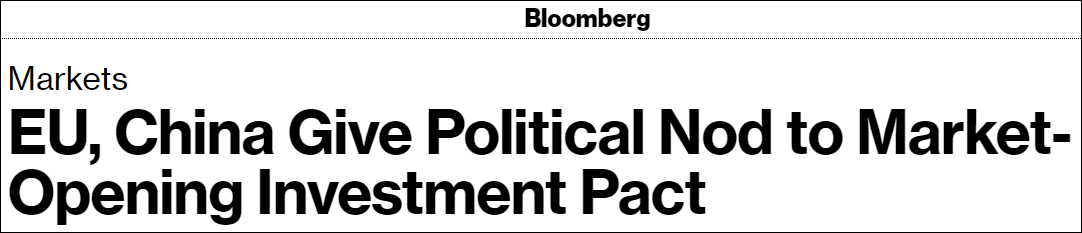 雖然美方並不樂見中歐達成投資協定,但拜登團隊成員此前的“推特喊話”並未能獲得回應。彭博社其實在其報道標題中就已説明了一點,即對於這項重大投資協定,無論是中方還是歐方,在政治層面都獲得了充分認可。