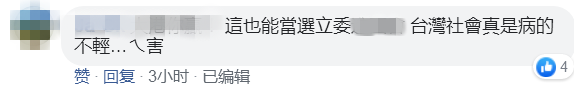 有網友痛心地表示,“這也能當選‘立委’,台灣社會真是病得不輕。”“可以不要報他嗎?看到他就無語……”