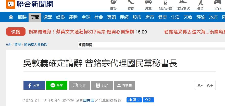 快訊!台媒:吳敦義請辭,國民黨黨主席暫無人代理