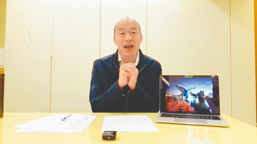 高雄市長韓國瑜選後首度開直播,18日傍晚在臉譜網拜早年,呼籲台灣社會恢復和諧。(圖片來源:台灣“中時電子報”)