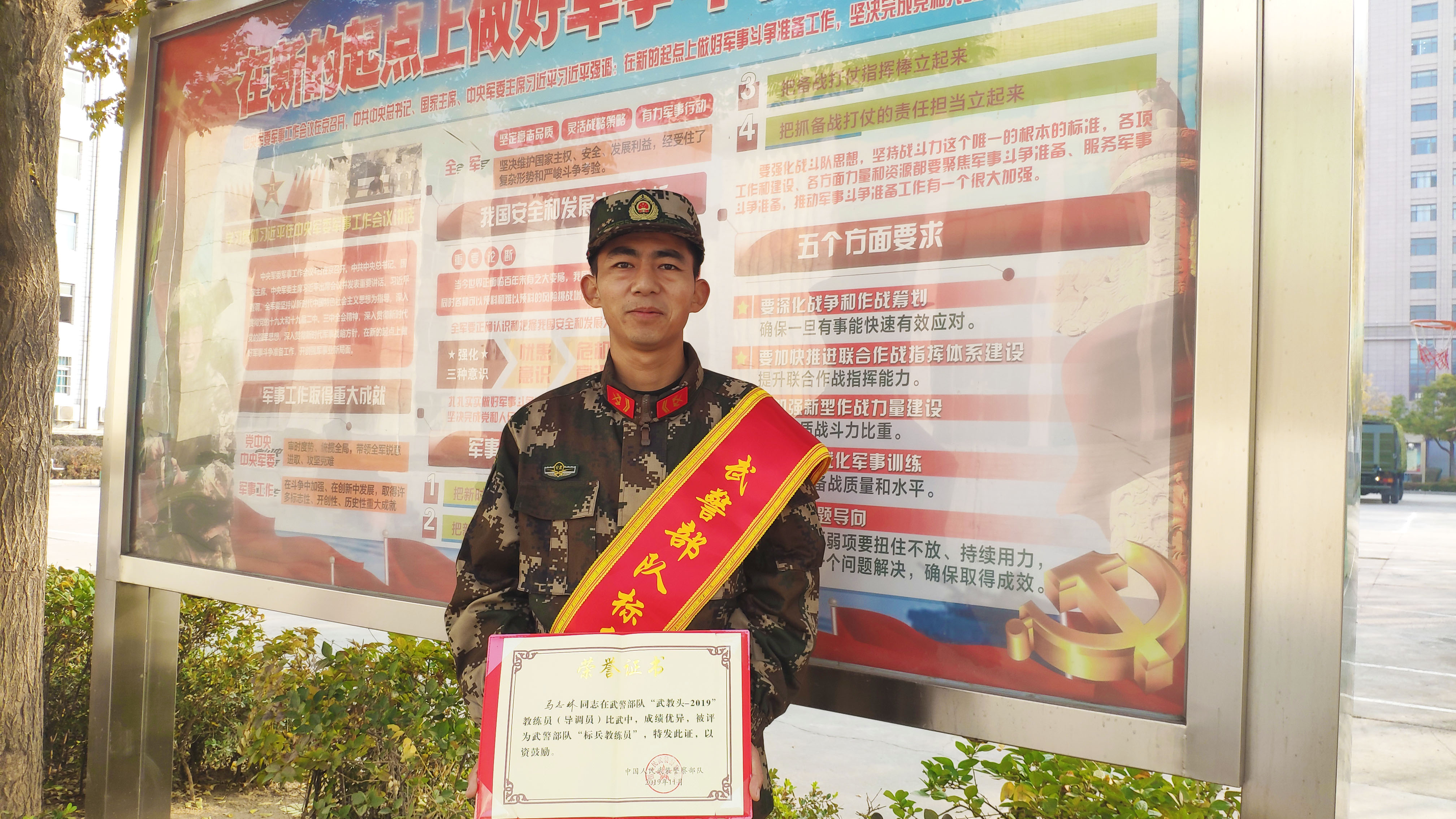 4432天,106368小時,6382080分鐘,這是一名武警戰士對部隊的熱愛。入伍13年以來,孫志棟始終把本職工作當成生活來對待,始終堅持在平凡的崗位上創造不平凡的業績,認認真真、紮紮實實。先後擔任班長、士兵檔案管理員、人力資源士官幹事,崗位在變,責任不變,態度不改,正像他的座右銘一樣:不求十全十美,只求問心無愧。孫志棟13年來,榮立三等功1次,嘉獎8次,多次被支隊評為優秀士官。