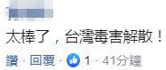 對於“一邊一國行動黨”解散,島內網友表示,“太棒了,台灣毒害解散!”