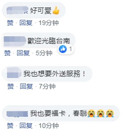 有網民則認為很“可愛”,還有人羨慕表示:也想要馬英九的外送服務和春聯↓