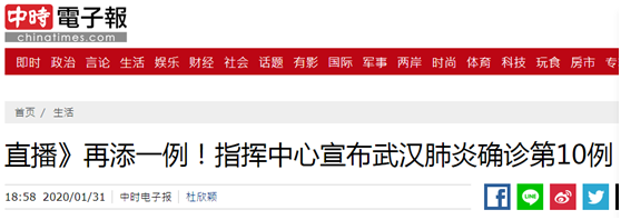 【環球網報道】據台灣“中時電子報”等台媒消息,台灣地區疫情指揮中心今日(31日)晚召開記者會,台“衞福部長”陳時中公佈島內新增1例新型冠狀病毒肺炎確診病例,該病例為第9例患者的丈夫,屬家庭內羣聚感染,未向外擴散。目前,台灣新型冠狀病毒肺炎病例累計共10例。