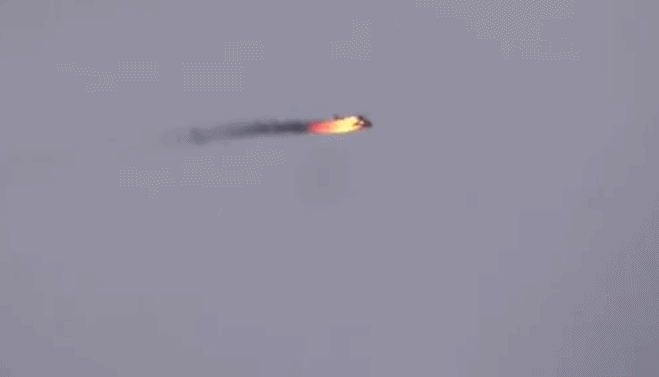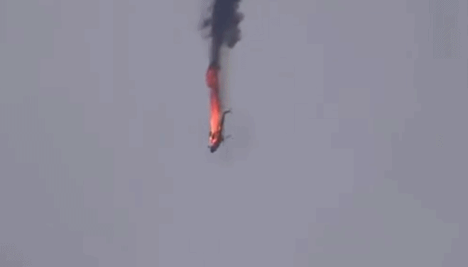 敍利亞一架直升機被擊落中彈起火墜毀瞬間曝光