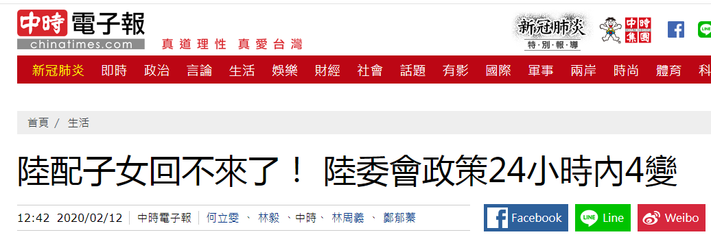據報道,台當局6日起宣佈,暫緩大陸籍人士赴台,擁有居留證的陸配不在此限。但因僅開放陸配,造成尚無台灣籍的陸配子女無法跟着母親返台。台陸委會昨天稱,基於家庭團聚及人道考慮,開放持社會考量專案長期居留證或長期探親證的台灣民眾或陸配的中國大陸子女入境。